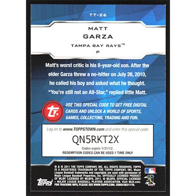 This is a 2011 Topps Topps Town Matt Garza baseball card. The card is #TT-26 and pictures show condition.