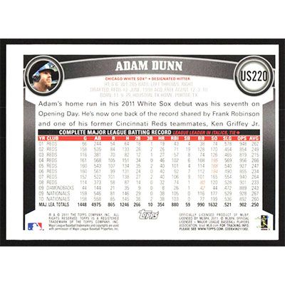 This is a 2011 Topps Update Diamond Anniversary Adam Dunn baseball card. The card is #US220 and pictures show condition.