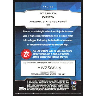 This is a 2011 Topps Update Topps Town Stephen Drew baseball card. The card is #TTU-22 and pictures show condition.