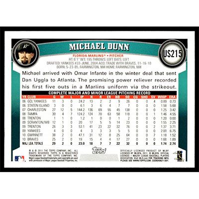 This is a 2011 Topps Update Michael Dunn baseball card. The card is #US215 and pictures show condition.