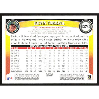 This is a 2011 Topps Update Kevin Correia baseball card. The card is #US245 and pictures show condition.