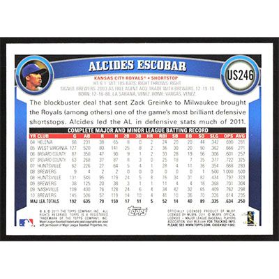 This is a 2011 Topps Update Alcides Escobar baseball card. The card is #US246 and pictures show condition.