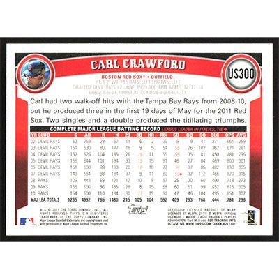 This is a 2011 Topps Update Carl Crawford baseball card. The card is #US300 and pictures show condition.