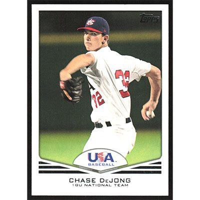 This is a 2011 USA Baseball Chase DeJong baseball card. The card is #USA-48 and pictures show condition.