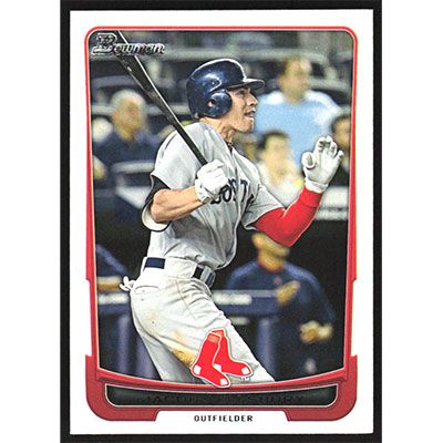 This is a 2012 Bowman Jacoby Ellsbury baseball card. The card is #20 and pictures show condition.