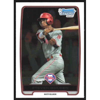 This is a 2012 Bowman Chrome Draft Draft Picks Steven Golden baseball card. The card is #BDPP90 and pictures show condition. Team(s): Philadelphia Phillies