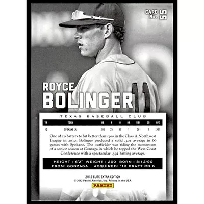 This is a 2012 Donruss Elite Extra Edition Royce Bolinger baseball card. The card is #55 and is in NM-MT condition.