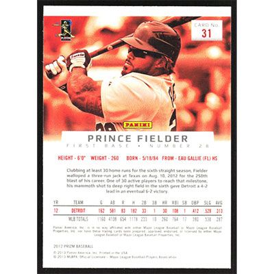This is a 2012 Panini Prizm Prince Fielder baseball card. The card is #31 and pictures show condition.