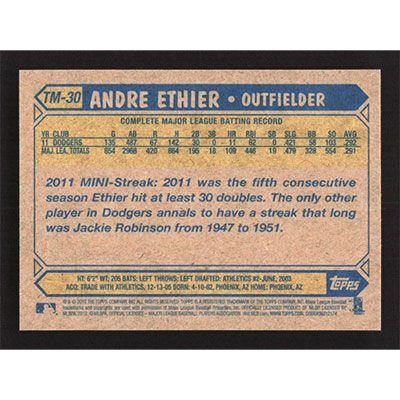 This is a 2012 Topps 1987 Minis Andre Ethier baseball card. The card is #TM-30 and pictures show condition.