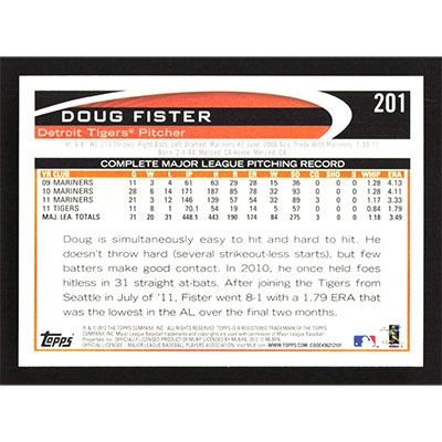 This is a 2012 Topps Doug Fister baseball card. The card is #201 and pictures show condition.