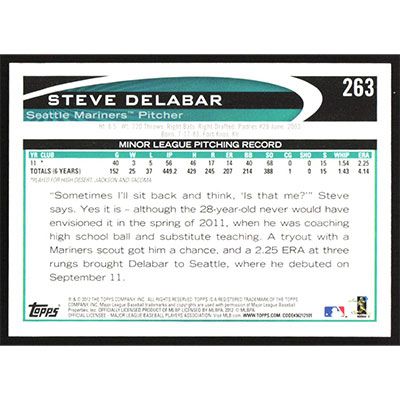 This is a 2012 Topps Steve Delabar baseball card. The card is #263 and pictures show condition.