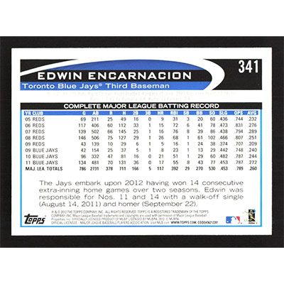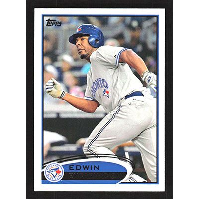 This is a 2012 Topps Edwin Encarnacion baseball card. The card is #341 and pictures show condition.