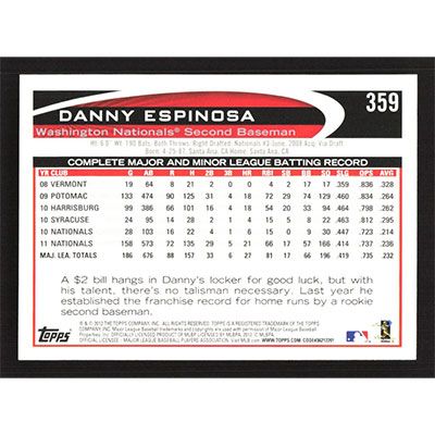 This is a 2012 Topps Danny Espinosa baseball card. The card is #359 and pictures show condition.