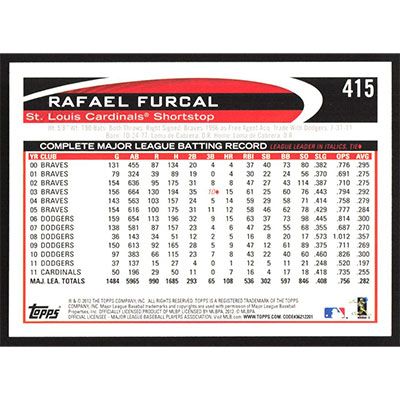 This is a 2012 Topps Rafael Furcal baseball card. The card is #415 and pictures show condition.