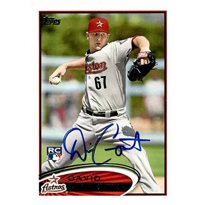 This is a 2012 Topps David Carpenter autographed baseball card. This card has been signed, in blue, by David Carpenter, and is guaranteed authentic by Ballcardz.com. The card is #595 and is in NM-MT condition.