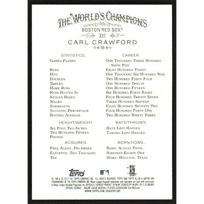 This is a 2012 Topps Allen & Ginter Carl Crawford short print baseball card. The card is #331 and pictures show condition.