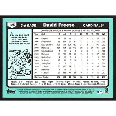 This is a 2012 Topps Archives David Freese baseball card. The card is #125 and pictures show condition.
