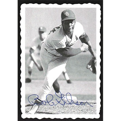 This is a 2012 Topps Archives '69 Deckle Edge Bob Gibson baseball card. The card is #8 and pictures show condition.