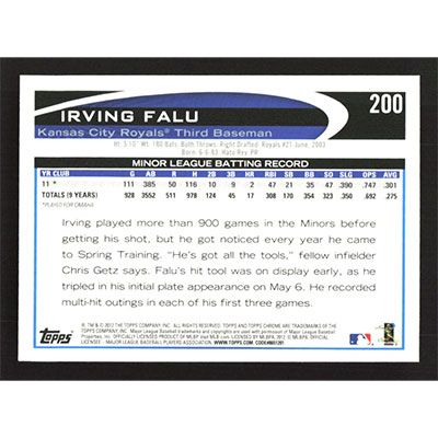 This is a 2012 Topps Chrome Irving Falu baseball card. The card is #200 and pictures show condition.