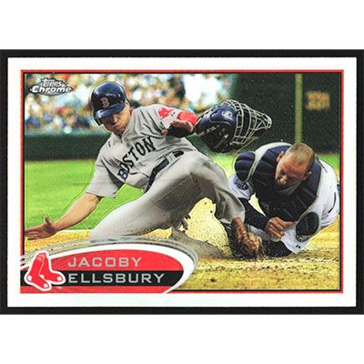 This is a 2012 Topps Chrome Refractors Jacoby Ellsbury baseball card. The card is #87 and pictures show condition.