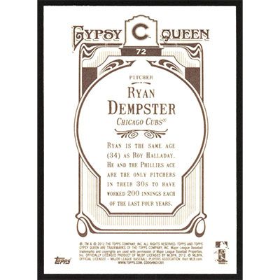 This is a 2012 Topps Gypsy Queen Ryan Dempster baseball card. The card is #72 and pictures show condition.