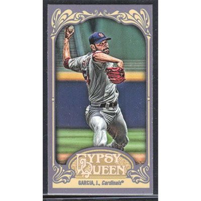 This is a 2012 Topps Gypsy Queen Mini Straight Cut Jaime Garcia baseball card. The card is #39 and pictures show condition. Team(s): St. Louis Cardinals