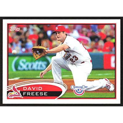 This is a 2012 Topps Opening Day David Freese baseball card. The card is #206 and pictures show condition.
