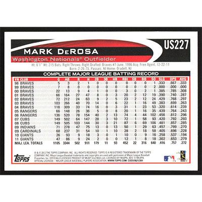 This is a 2012 Topps Update Mark DeRosa baseball card. The card is #US227 and pictures show condition.