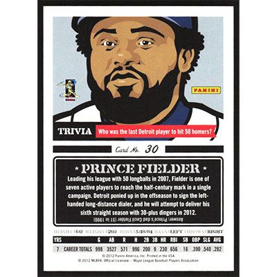 This is a 2012 Triple Play Prince Fielder baseball card. The card is #30 and pictures show condition.