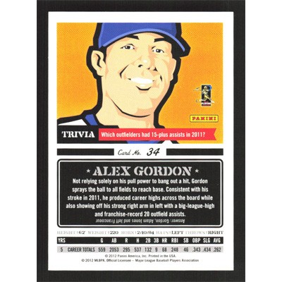 This is a 2012 Triple Play Alex Gordon baseball card. The card is #34 and pictures show condition.