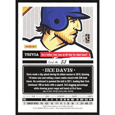 This is a 2012 Triple Play Ike Davis baseball card. The card is #53 and pictures show condition.