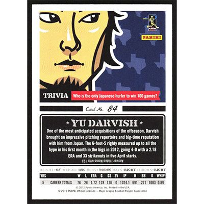 This is a 2012 Triple Play Yu Darvish baseball card. The card is #84 and pictures show condition.