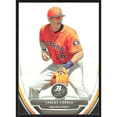 This is a 2013 Bowman Platinum Prospects Carlos Correa baseball card. The card is #BPP23 and pictures show condition.
