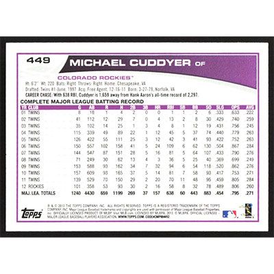 This is a 2013 Topps Michael Cuddyer baseball card. The card is #449 and pictures show condition.