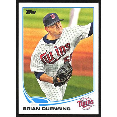 This is a 2013 Topps Brian Duensing baseball card. The card is #467 and pictures show condition.
