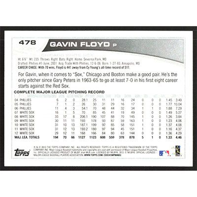 This is a 2013 Topps Gavin Floyd baseball card. The card is #478 and pictures show condition.
