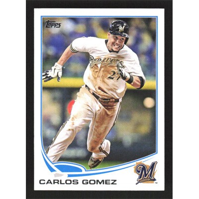 This is a 2013 Topps Carlos Gomez baseball card. The card is #619 and pictures show condition.
