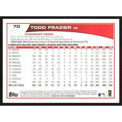 This is a 2013 Topps Todd Frazier baseball card. The card is #70 and pictures show condition.