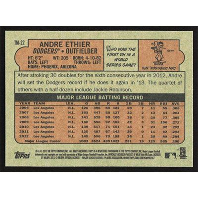 This is a 2013 Topps '72 Minis Andre Ethier baseball card. The card is #TM-22 and pictures show condition.