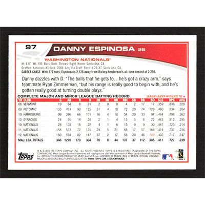 This is a 2013 Topps Danny Espinosa baseball card. The card is #97 and pictures show condition.
