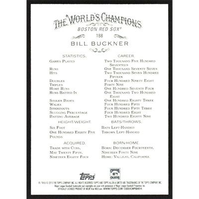 This is a 2013 Topps Allen & Ginter Bill Buckner baseball card. The card is #188 and pictures show condition.