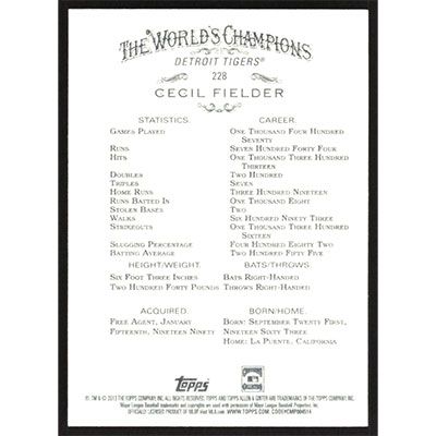 This is a 2013 Topps Allen & Ginter Cecil Fielder baseball card. The card is #228 and pictures show condition.
