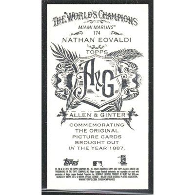 This is a 2013 Topps Allen & Ginter Mini A & G Back Nathan Eovaldi baseball card. The card is #174 and pictures show condition.