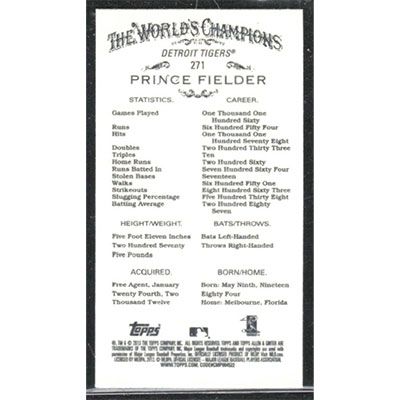 This is a 2013 Topps Allen & Ginter Mini Black Prince Fielder baseball card. The card is #271 and pictures show condition.