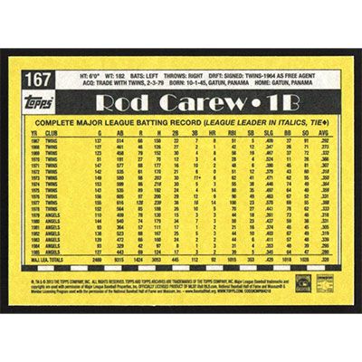 This is a 2013 Topps Archives Rod Carew baseball card. The card is #167 and pictures show condition.