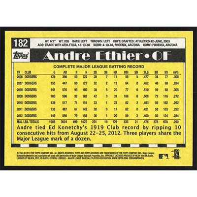 This is a 2013 Topps Archives Andre Ethier baseball card. The card is #182 and pictures show condition.