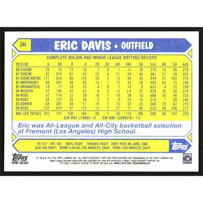 This is a 2013 Topps Archives Eric Davis short print baseball card. The card is #244 and pictures show condition.
