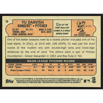 This is a 2013 Topps Archives Yu Darvish baseball card. The card is #30 and pictures show condition.