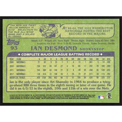 This is a 2013 Topps Archives Ian Desmond baseball card. The card is #93 and pictures show condition.