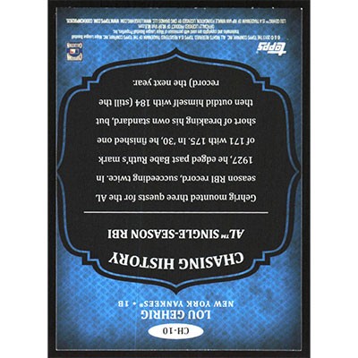 This is a 2013 Topps Chasing History Lou Gehrig baseball card. The card is #CH-10 and pictures show condition.